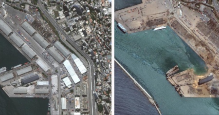 Il porto di Beirut prima e dopo la tremenda esplosione