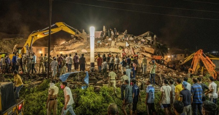 NEW DELHI - Tre squadre di soccorritori aiutati da cani hanno lavorato tutta la notte frugando nelle macerie nel tentativo di recuperare sopravvissuti, dopo il crollo del palazzo avvenuto ieri sera nella città di Mahad, 120 chilometri a sud di Mumbai. Si teme che nell'incidente siano rimaste uccise da 20 a 70 persone. I soccorritori hanno invece estratto dai detriti un bambino di 4 anni vivo.