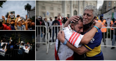 Una donna avvolta nella bandiera argentina piange desolata, un giovane alza le braccia come se avesse segnato un gol, e altri mandano un bacio e gridano semplicemente "Ciao Dieguito", come una strana religione, dove ognuno improvvisa il proprio rito. All'esterno della Casa Rosada è presente un ampio dispiegamento di forze dell'ordine. Nessuno può entrare nella camera ardente senza mascherina, e in fila si cerca di mantenere il distanziamento sociale richiesto a causa della pandemia. La veglia pubblica durerà fino alle 16 locali (le 20 in Svizzera).