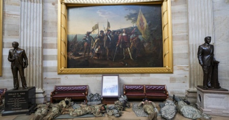 La Guardia nazionale presidia massicciamente Capitol Hill anche all'interno. Sui social sono state postate diverse foto di militari in mimetica e armati che dormivano per terra lungo i corridoio dell'edificio.