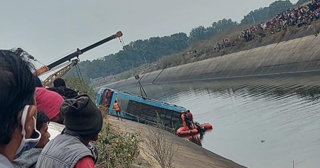 Tragedia nel Madhya Pradesh: un pullman è finito in un canale.