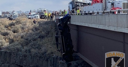 BOISE - Un uomo e una donna, intrappolati all'interno del loro pick-up che penzolava oltre le barriere di protezione da un ponte, sono stati salvati grazie all'intervento delle squadre di sicurezza.
