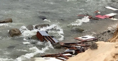 Il cabinato, di circa 12 metri di lunghezza, ha urtato contro le rocce ed è andato distrutto. Le persone a bordo erano 30, secondo i soccorritori: per la maggior parte sono riuscite a raggiungere la riva in autonomia, mentre alcune sono state strappate alla forte corrente che le stava riportando in mare aperto. Le operazioni sono avvenute in condizioni piuttosto complesse: vento piuttosto forte e acqua fredda.