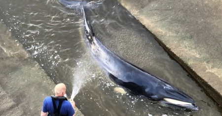 LONDRA - È stato osservata da decine di passanti curiosi il doppio salvataggio di una balenottera di più di 3 metri, rimasta bloccata nel Tamigi a Londra.