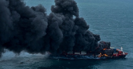L'equipaggio della nave, di 25 membri, è stato evacuato dopo l'esplosione, che ha comportato la caduta in mare di diversi container. Alcune foto aeree rilasciate dalle forze aeree dello SRi Lanka mostrano la nave avvolta dalle fiamme che sprigionano una densa colonna di fumo nero.