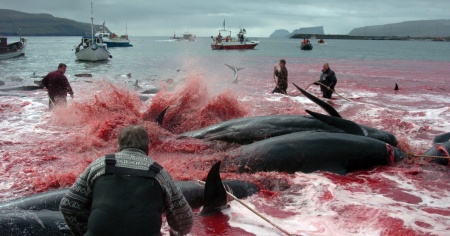 In tutto 1'428 cetacei sono stati attirati domenica sulla spiaggia di Skalabotnur a Eysturoy, dove sono stati uccisi con dei coltelli. Questa tradizione è nota come Grindadráp e viene praticata da centinaia di anni. Molti cittadini assistono la caccia dalla riva, e altrettanti altri danno man forte sia dalla spiaggia che in mare. Stando alla Bbc, per i sostenitori è un modo sostenibile di procurarsi del cibo dalla natura e una parte importante dell'identità culturale. Le organizzazioni ambientaliste, come Sea Shepherd, considerano la pratica crudele e non necessaria.