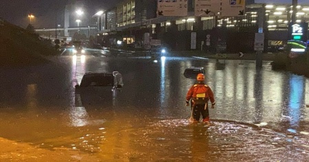 Molte le squadre dei vigili del fuoco impegnate sul posto, per estrarre automobilisti e viaggiatori appena sbarcati, rimasti intrappolati a bordo delle loro vetture, nelle strade e nei sottopassi del perimetro esterno dell'aeroporto e appena fuori.