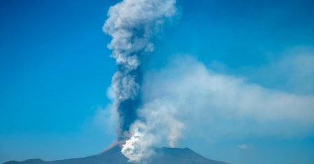 Nuova eruzione sull'Etna, una colonna di fumo alta 9 chilometri e colate laviche