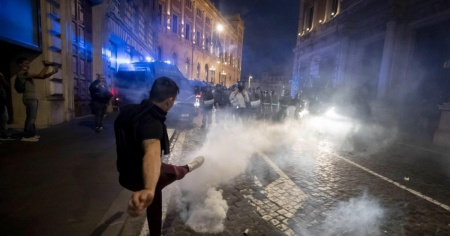 Se a Milano il consueto sit-in del sabato organizzato dal movimento No Pass è diventato un corteo spontaneo che ha mandato in tilt il traffico del centro, a Roma la manifestazione pacifica organizzata nel pomeriggio in piazza del Popolo è rapidamente degenerata. Qui i manifestanti si sono prima diretti senza autorizzazione verso Villa Borghese scontrandosi una prima volta con le forze dell'ordine, poi in migliaia hanno puntato al Parlamento e alla sede della presidenza del Consiglio, dove a pochi metri - a Largo Chigi - un cordone delle forze dell'ordine ha evitato il peggio. Bombe carta, oggetti trovati per strada e perfino biciclette e monopattini sono stati lanciati contro gli agenti, che hanno reagito esplodendo lacrimogeni e attivando idranti per disperdere la folla.