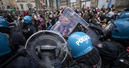 ROMA - La polizia italiana ha arrestato 12 persone coinvolte negli scontri che sono avvenuti ieri pomeriggio e sera a Roma. Tra di loro ci sarebbero i due leader di Forza Nuova Roberto Fiore e Giuliano Castellino.
