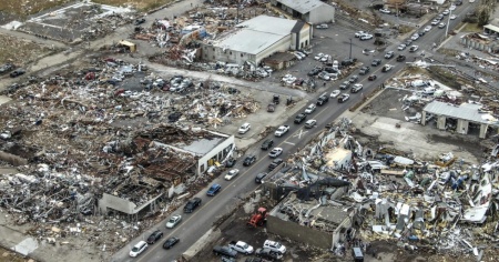 Particolarmente vessato è lo Stato del Kentucky dove alcune città sono state quasi completamente rase al suolo. L'impatto visivo delle foto scattate dal cielo è impressionante, sembra di guardare delle aree che sono state devastate da un bombardamento. «Il livello di distruzione è un qualcosa di mai visto», ha commentato ai media il governatore del Kentucky Andy Beshear.