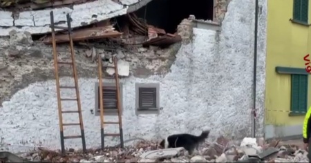 L'unità cinofila è intervenuta sul posto per escludere la presenza di altre persone sotto le macerie.