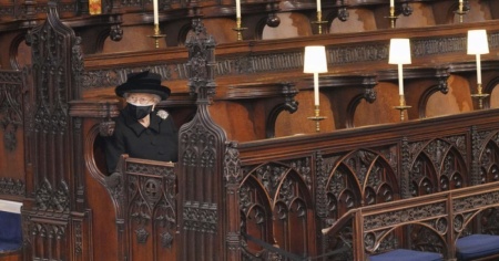 Il giorno dopo, il 17 aprile, alla cappella del Castello di Windsor si tenevano le esequie del principe Filippo, in forma ridotta a causa delle disposizioni Covid. Durante la messa funebre, Elisabetta era rimasta seduta da sola in un androne, proprio per rispettare il distanziamento sociale. All'interno della Chiesa sono potute entrare solo pochissime persone.