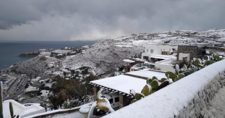 Mykonos e altre isole delle Cicladi ricoperte dalla neve