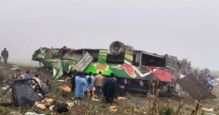 Stando ai media locali, il veicolo a lunga percorrenza ha finito per perdere aderenza con la carreggiata - in cattive condizioni e particolarmente fangosa - sbandando fuori strada e giù da uno ripido dirupo. Il bus si è poi cappottato diverse volte, per fermarsi circa 100 metri più in basso.
