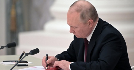 Il discorso del presidente russo alla nazione si è concluso con la firma del decreto di riconoscimento del Donbass