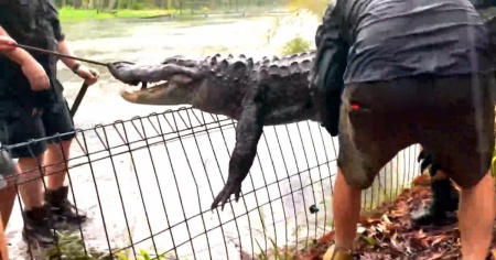 Una volta superata però, è rimasto intrappolato da un secondo recinto; I guardiani lo hanno avvistato e, con non poca difficoltà, sollevato e riportato in acqua, dove si è poi ricongiunto con gli altri 55 alligatori ospiti del parco.