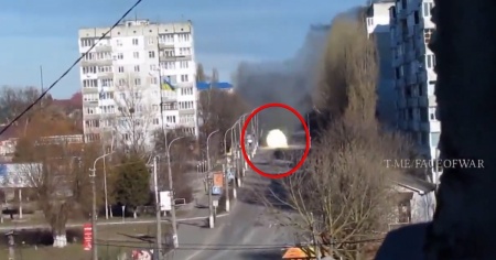 Civile "armato" di telefonino, bombardato da un carro armato russo