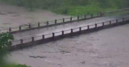 Le videocamere di sicurezza riprendono diverse infrastrutture mentre spariscono sotto il livello delle acque
