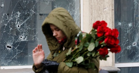 La foto in questione è stata scattata questa mattina a Donetsk, "capitale" di una di quelle due Repubbliche autoproclamate, a maggioranza filo-russa, che sono state l'innesco dell'invasione russa in Ucraina. E la protagonista si sta recando a lasciare quel mazzo di fiori in un memoriale improvvisato in città per ricordare le vittime - una ventina i morti e una trentina i feriti - provocate da un missile che ha colpito la città ieri. Per mano di chi ancora non si sa.