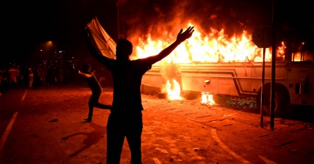 Il coprifuoco messo in atto durante la notte è stato revocato all'alba di questa mattina, ma la presenza della polizia e dell'esercito è stata rafforzata in tutta la città, dove i rottami di un autobus bruciati stavano ancora bloccando la strada che conduce alla casa del presidente Gotabaya Rajapaksa.