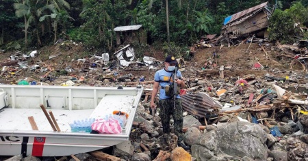 Nella provincia centrale di Leyte, le frane hanno spazzato via le case delle comunità di agricoltori e pescatori, e trasformato il paesaggio. La regione soggetta a disastri è regolarmente devastata da tempeste - incluso il super tifone Haiyan che ha colpito nel 2013 - e gli scienziati avvertono che stanno diventando più potenti man mano che il pianeta si riscalda a causa del cambiamento climatico causato dall'uomo.