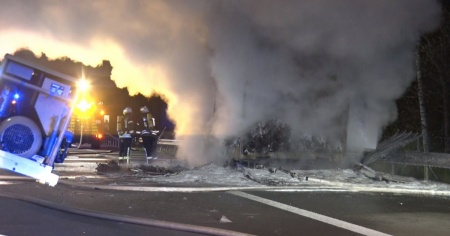 DERSUM - Circa 5'000 polli sono morti bruciati questa notte sull'autostrada tedesca "Autobahn 31", in Bassa Sassonia.