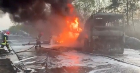 Terrible footage from the highway near Rivne, where 17 passengers of the bus, which collided with a fuel truck, died. #Ukraine pic.twitter.com/G4mltlVIQJ