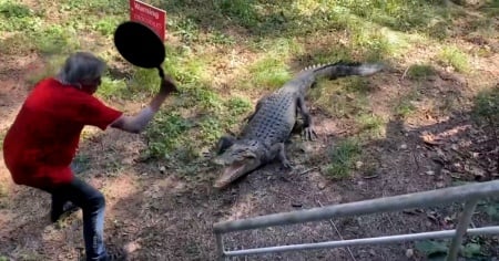 Come riportato dal The Canberra Times, l'uomo si è sentito di doverle dare una lezione. «Ci ha provato!» ha dichiarato 'King Kai', «e quindi l'ho dovuta allontanare con un padella. In quei momenti non hai il tempo di pensare, devi agire e basta». Quindi armato di padella si è precipitato verso il coccodrillo, che inizialmente ha provato a reagire, ma dopo due colpi dritti sul muso ha capito che a sto giro non tirava una buona aria per lei.