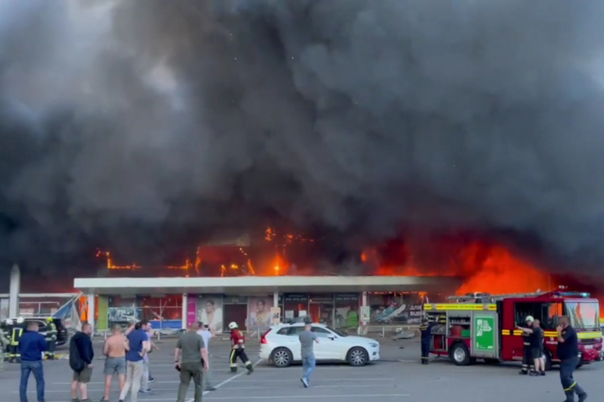 Il bombardamento russo - ha scritto su Telegram il presidente ucraino Volodymyr Zelensky - ha colpito «un centro commerciale, dove c'erano più di mille civili». L'obiettivo non costituiva «nessun pericolo per l'esercito russo» e non aveva «nessun valore strategico». Insieme al messaggio, Zelensky ha pubblicato un video della struttura in fiamme, avvolta da un'enorme nube di fumo nero, con un mezzo dei vigili del fuoco nei pressi e diverse persone all'esterno.