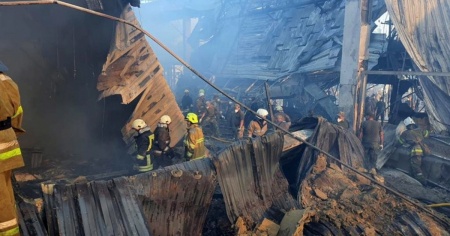 «Siamo vivi». Sono queste le parole che si sentono urlare in un video girato all'interno del centro commerciale di Kremenchuk, nella regione di Poltava, nell'Ucraina centrale, colpito questo pomeriggio da un raid russo mentre era pieno di gente. Nelle immagini pubblicate da Anton Geraschenko, consigliere del ministero dell'Interno di Kiev, si vede un uomo che corre tra le macerie dell'edificio in fiamme per una quarantina di secondi, finché non riesce a uscirne. Il video, presumibilmente girato con un telefono cellulare, mostra alcune parti della struttura devastata dal bombardamento.