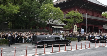 Lungo il percorso del corteo funebre si è formata una folla commossa ma composta. Lunghe file erano già presenti al tempio buddista Zojoji, nel centro della capitale nipponica, che ha ospitato la cerimonia funebre. Al termine il carro funebre con le spoglie di Abe ha attraversato la metropoli, tra bandiere listate a lutto e cittadini che hanno mostrato il proprio rispetto con mani giunte in preghiera e profondi inchini.