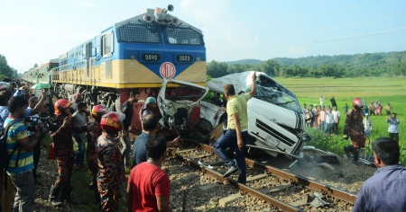 L'incidente è avvenuto a Mirsharai, 150 km a sud est della capitale Dacca. Secondo un portavoce della compagnia ferroviaria, 11 dei 14 passeggeri del minibus sono morti sul colpo quando il treno, che andava a bassa velocità, ha urtato il bus a un passaggio a livello, trascinando il veicolo per mezzo chilometro. Il portavoce ha inoltre indicato che l'arrivo del treno era stato segnalato.