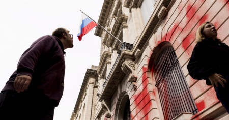 Vernice rosso sangue sul consolato russo a New York