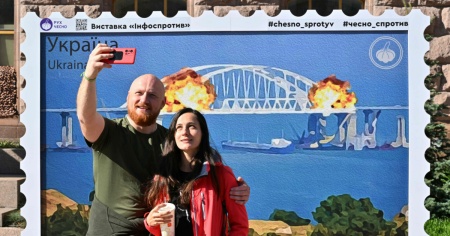In quell'occasione, le poste ucraine avevano rielaborato una precedente serie di francobolli, che mostravano un soldato ucraino con il dito medio rivolto verso la nave russa, aggiungendone alcuni che lo mostravano nella stessa posizione, ma senza più la nave. Uno sfregio nello sfregio, per Mosca. Ancora più rapida è stata l'ultima iniziativa dell'ufficio postale di Kiev, che poche ore dopo l'esplosione sul ponte ha annunciato una nuova serie filatelica "a tema". Quest'ultima battuta a sua volta sul tempo dall'opera che un gruppo di artisti ucraini ha realizzato ed esposto al centro della capitale: un francobollo gigante in cui viene immortalato l'attimo in cui esplode.