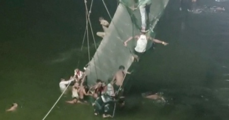 Intanto sono state diffuse le immagini che mostrano il momento del cedimento della struttura, con le persone che precipitano in acqua e decine che tentano di salvarsi restando aggrappate al ponte sospeso parzialmente sommerso nel fiume Macchu, nella città di Morbi, con i servizi di soccorso impegnati nelle operazioni.