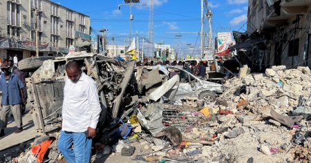 MOGADISCIO - Un appello per l'aiuto internazionale dopo il duplice attentato che ha ucciso 100 persone nel fine settimana è stato fatto dal presidente della Somalia, Hassan Sheikh Mohamud, mentre le ruspe continuano a lavorare nell'area della capitale Mogadiscio in cui sabato sono esplose due autobomba, causando anche oltre 300 feriti. L'attacco, rivendicato dal gruppo jihadista al-Shabaab e indirizzato contro il ministero dell'Istruzione, è stato il più mortale degli ultimi cinque anni.