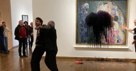 "Morte e Vita" esposto al Leopold Museum di Vienna è stato preso di mira dal gruppo di attivisti "Last generation".
