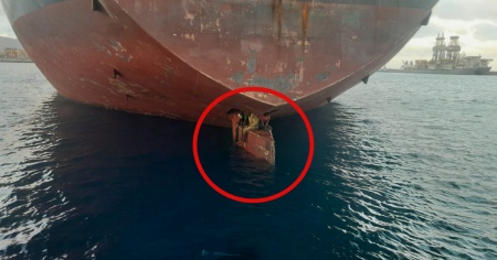 LAS PALMAS - Tre migranti hanno affrontato un viaggio lungo 11 giorni nascosti in equilibrio sul timone di una petroliera.