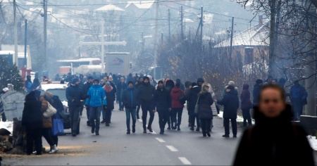 Le truppe Nato, per rafforzare la sicurezza, hanno dispiegato una barriera di filo spinato, motivando il rafforzamento delle proprie truppe con la possibile presenza di "gruppi criminali tra i dimostranti". Momenti di tensione si sono avuti nel corso di tafferugli tra manifestanti e polizia serba, che è poi riuscita a respingere la folla nel pomeriggio. Una targa con la scritta 'Accordo di Bruxelles' è stata data alle fiamme, con i dimostranti che scandivano 'Mai frontiera - il Kosovo è Serbia'. I blocchi stradali e le barricate da parte dei serbi, che vanno avanti da nove giorni, creano notevoli difficoltà nelle comunicazioni al nord e nei passaggi transfrontalieri per la chiusura dei due valchi di Jarinje e Brnjak.