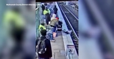 OREGON - Il video mostra il terrificante istante in cui una donna si alza di scatto da una panchina della stazione Northeast Portland per spingere una bambina di soli tre anni sul binario del treno. La piccola stava semplicemente aspettando il treno con sua madre quando è avvenuto il fatto. Immediatamente i presenti visibilmente scioccati si sono fiondati sulle rotaie per salvarle la vita. Grazie a loro, la bimba ne è uscita 'solo' con forte mal di testa e un piccolo segno rosso sulla fronte.