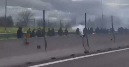 La polizia è dovuta intervenire per riportare la situazione alla normalità e, per farlo, è stata costretta a chiudere l'autostrada creando una coda che ha raggiunto la lunghezza di 15 chilometri. I soggetti sono stati identificati dagli agenti, ma alcuni di essi sono risaliti in auto e sono ripartiti verso nord. Un primo bilancio non confermato ufficialmente dalle autorità parla di un ferito e diversi contusi.