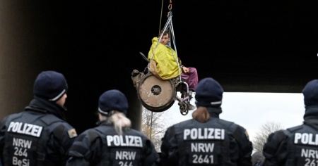 BERLINO - Questa mattina, a circa quattro chilometri da Lützerath in Nordreno-Vestfalia, alcuni attivisti tedeschi per il clima si sono appesi da un ponte sull'autostrada 44. Due dei manifestanti si sono calati in sedie a rotelle. Lo riporta l'agenzia Dpa. Luetzerath è il villaggio tedesco attualmente in via di sgombero per far spazio a una miniera di carbone.