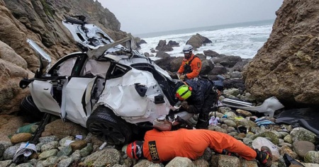 Aveva sfondato il guardrail alla guida della sua Tesla per precipitare nel vuoto, portando con sé l’intera famiglia