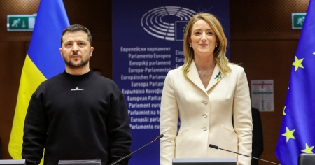 Nonostante il ritardo nella scaletta della giornata, la Metsola e Zelensky avevano tenuto un incontro bilaterale di oltre venti minuti prima di entrare nell'aula.
