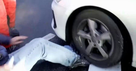 Nelle immagini si vedono delle persone (verosimilmente agenti in borghese) che, in seguito all'incidente, trascinano a bordo strada gli attivisti, di fatto interrompendo il sit-in. In questo modo hanno evitato che la loro goliardia e la rabbia degli automobilisti sia potuta sfociare in contrasti fisici come risse o peggio.