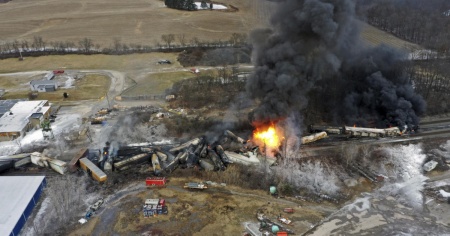 Sostanze altamente tossiche - Il sinistro è avvenuto il tre febbraio, intorno alle nove di sera. Stando alle informazioni riportate dal National Transportation Safety Board (Ntsb), 38 vagoni sono deragliati, provocando un incendio che ha coinvolto altre dodici carrozze.