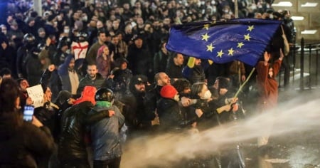 Ieri sera i manifestanti hanno sfondato le barriere all'ingresso del Parlamento, tentando di entrare nel cortile del palazzo. Bombe molotov e pietre sono state lanciate contro la polizia negli scontri durante la notte, dopo che il Parlamento ha dato il suo sostegno iniziale a un progetto di legge sugli agenti stranieri che secondo i critici mina le speranze di adesione all'Ue del Paese del Caucaso meridionale, la libertà di stampa e la società civile.