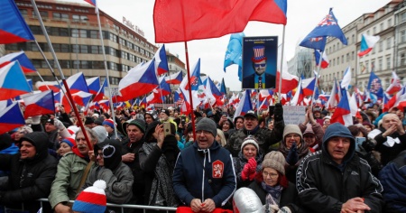 I manifestanti hanno riempito più della metà della Piazza San Venceslao, portando bandiere della Repubblica Ceca e striscioni che chiedevano le dimissioni del governo, la fine della guerra in Ucraina o la fine della Nato.
