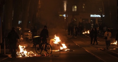 Un migliaio di persone si sono riunite a Strasburgo, nell'est del paese, danneggiando vetrine di banche e dando fuoco a cassonetti e insegne pubblicitarie. Scontri a Lille, sulla place de la République, a Lione, dove alcune centinaia di giovani hanno lanciato oggetti contro la polizia che ha risposto con cariche. Bottiglie incendiarie, gas lacrimogeni, cariche, anche a Nantes, mentre a Rennes, in Bretagna, centinaia di persone hanno eretto barricate con materiale di cantiere e le hanno successivamente incendiate.